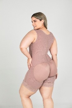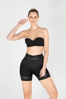 Faja de microfibra postquirúrgica de alta compresión, lleva cremallera o broches en abdomen, tira gruesa en hombro, short levanta cola interno invisible.