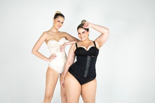 Full hourglass sculpting garment with ten silicone boning supports, triple hook closure, and adjustable zipper. Includes high-enhancement short with butt-lifting effect.