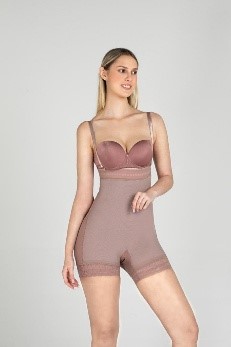 Panty de microfibra con alto control en vientre bajo y abdomen, ciñe la cintura, siliconado en pierna y abdomen con encaje ancho, levanta cola interno invisible, queda debajo del seno.